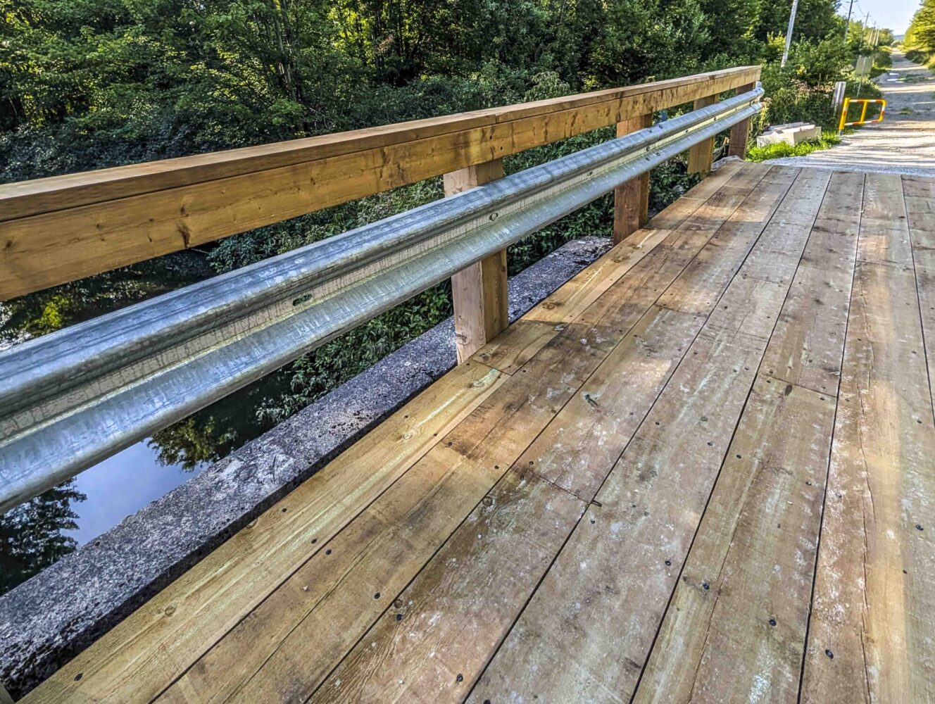 In 2025, Pearson Engineering was engaged by the Township of Georgian Bluffs to provide structural engineering services for the rehabilitation of Structure S-0005, located on Sarawak Keppel Townline and currently operating as part of a recreational trail system. Due to the poor condition of the structure, verified through the completion of a structural load evaluation, the bridge was scheduled for temporary closure to all traffic in early 2025. To limit impacts to trail users, the Township prioritized the detailed design and tendering of the bridge rehabilitation. The construction scope included removal and replacement of the existing timber deck and steel beam barrier systems, along with the installation of new traffic signage and pedestrian barricades on the bridge approaches.